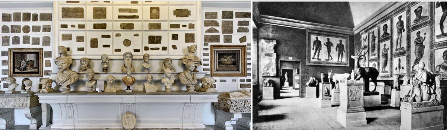 In general, mosaics in collections in the 18th century had to be tear out and cut up to make more artefacts, for immediate placement in an antiquarian market. The 19th century in Rome marked the beginning of massive systematic excavations in the catacombs, the founding of the first institution for the protection of these monuments and above all the opening of a large museum dedicated to them in 1854 at the Lateran Palace, where the discovered mosaics were directly brought. In the Lateran Museum, they are displayed into the wall, following a practice that has been going on for centuries, inaugurated in papal museums by the display of the Dove emblema of Villa Adriana. Indeed, in the Lateran Palace hosted the important museum experiment of displaying the mosaic of the athletes of the Baths of Caracalla, discovered in 1824 and then placed in the museum in 1836, first in an imaginative reconstruction of the floor and then set into the wall, had been developed.